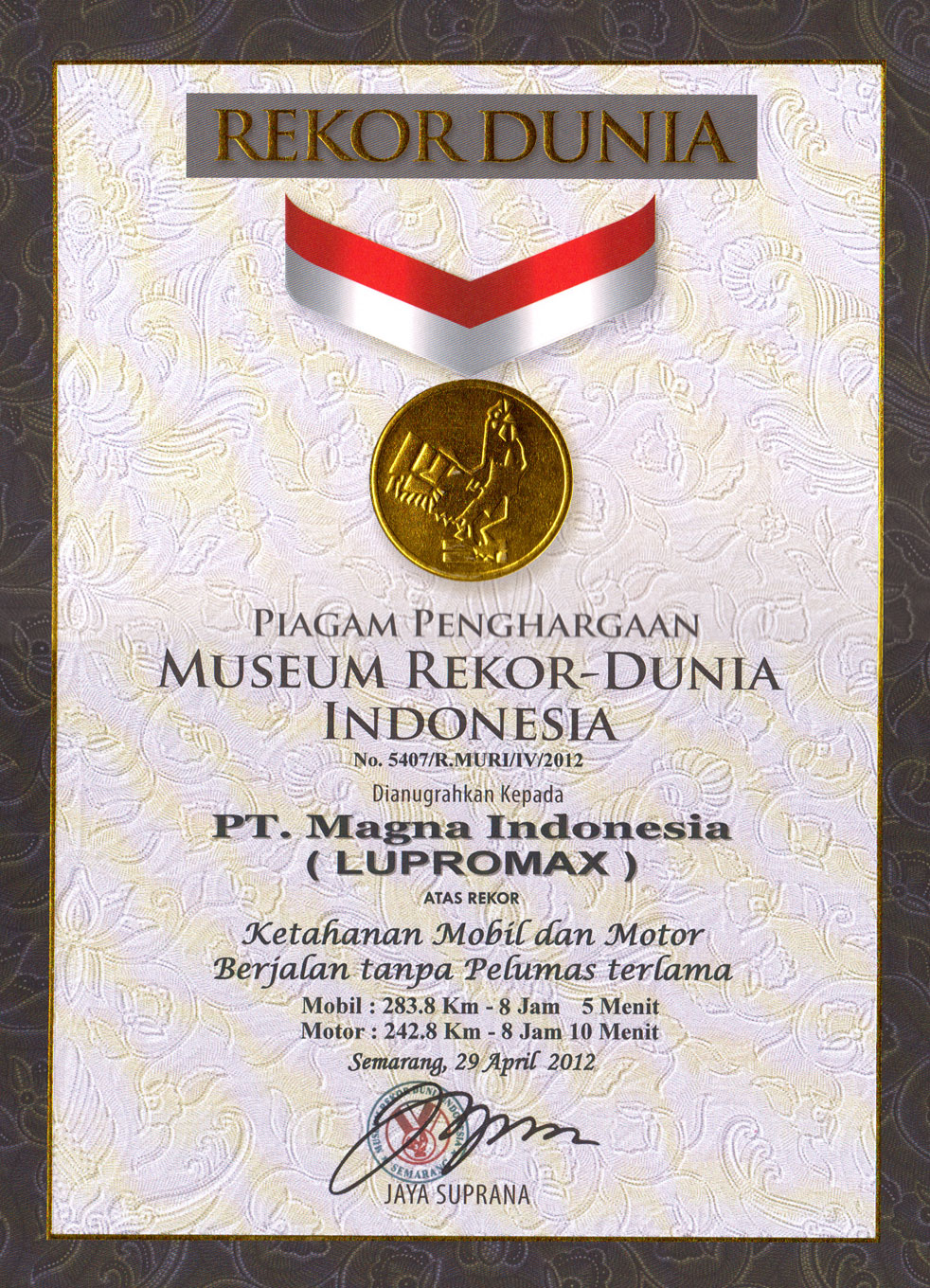 ISO 9001 : 2008by SGS System Certification, UKAS Quality Management certificate number ID04/0436, Komite Akreditasi Nasional certificate number ID04/0436 and fitted by Quality, Health, Safety and Environment (QHSE) procedure.